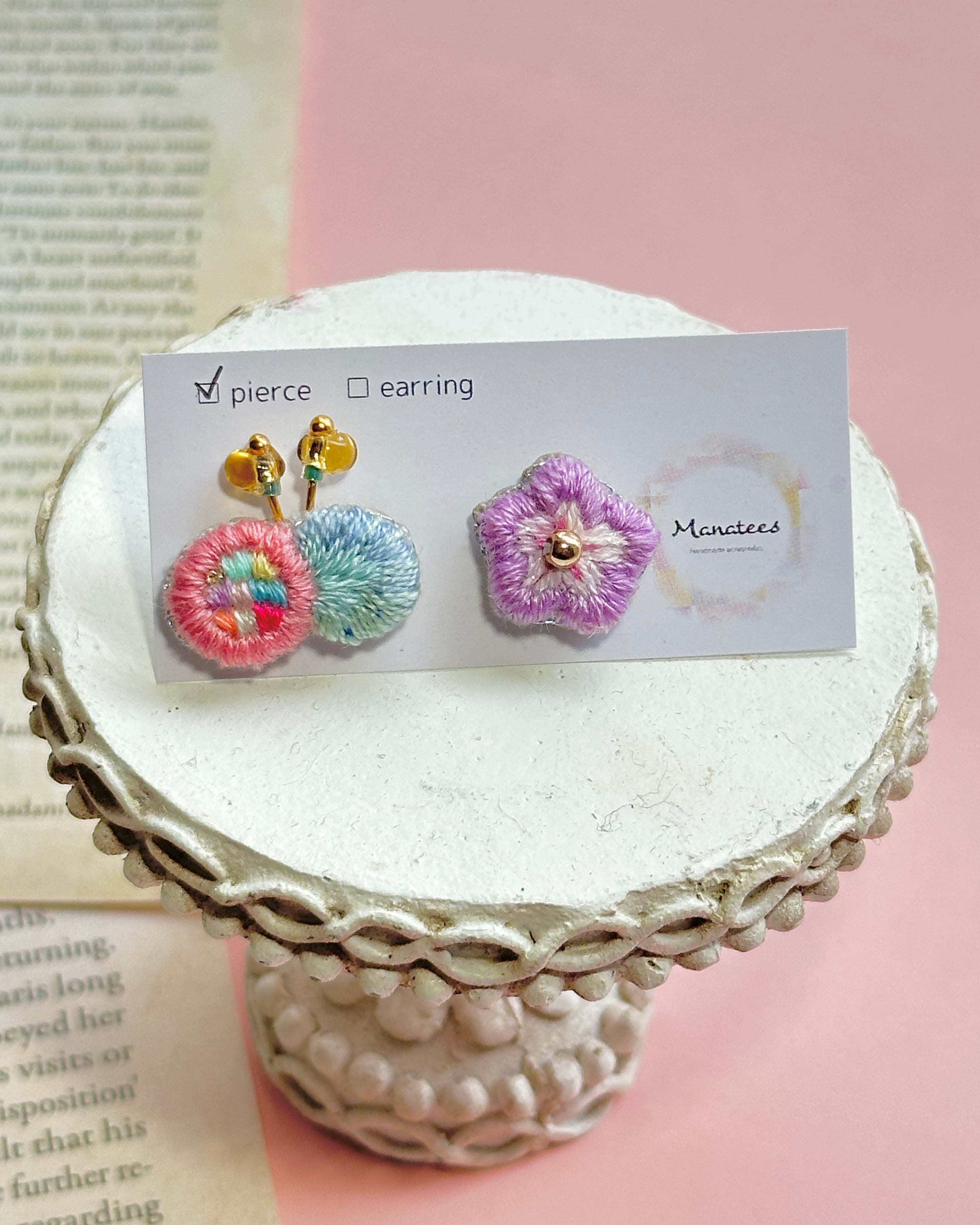 【 POPなピアス ちょうちょ 】(刺繍ピアス)