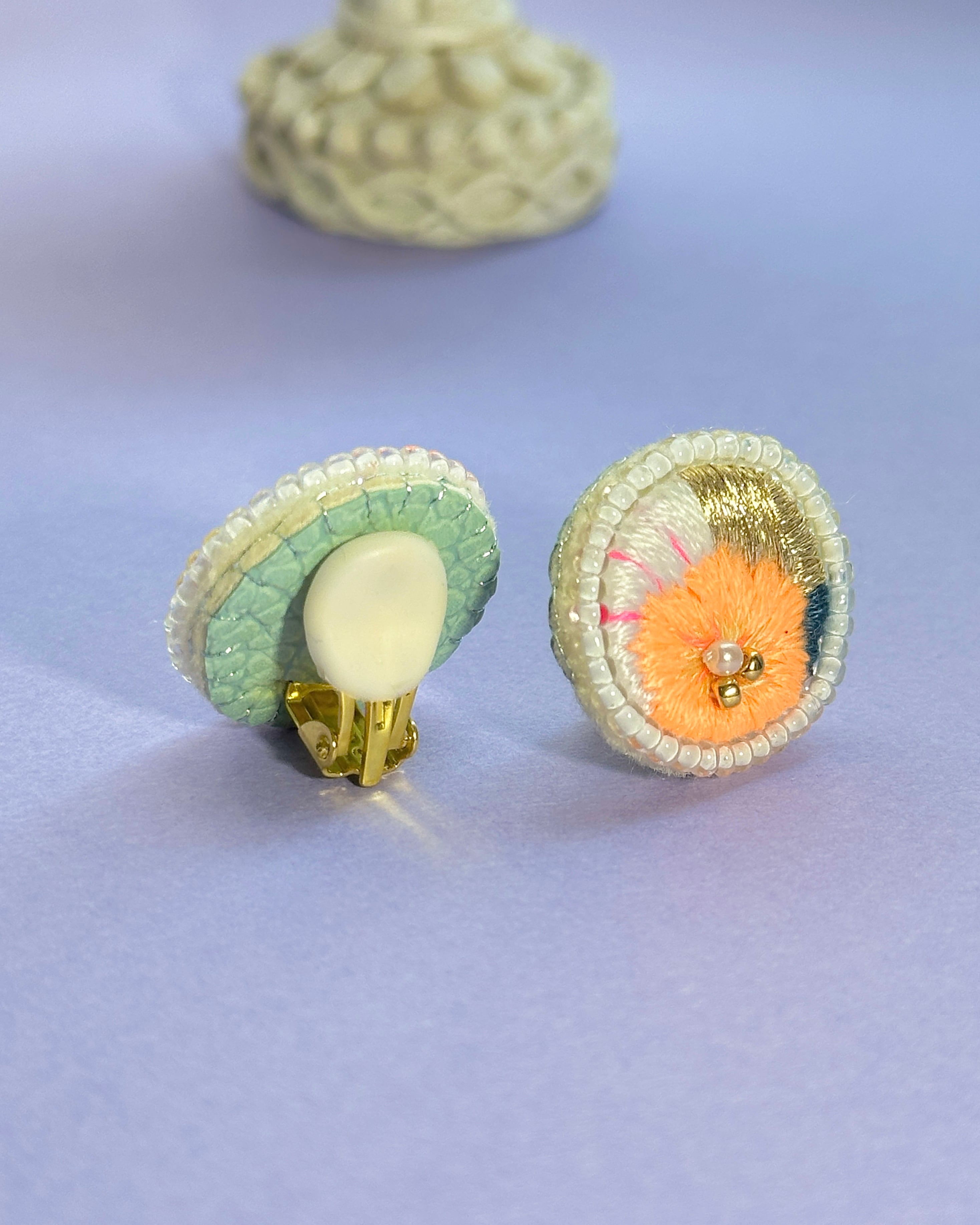 1点もの【 ネオンフラワー 】(刺繍イヤリング・蝶バネタイプ)